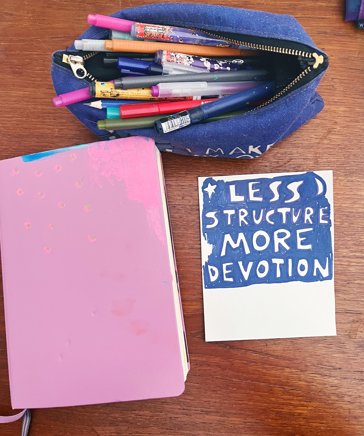 Which is something I talk about in the creative planning and project management class. Having the right structure for you, and for your project, gives you more space to be really present with it and creates more space for magic. So there is a balance there - it can't be ALL ABOUT following through on a plan and it can't be JUST vibes.