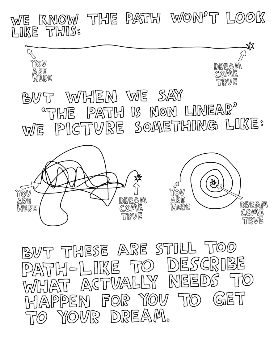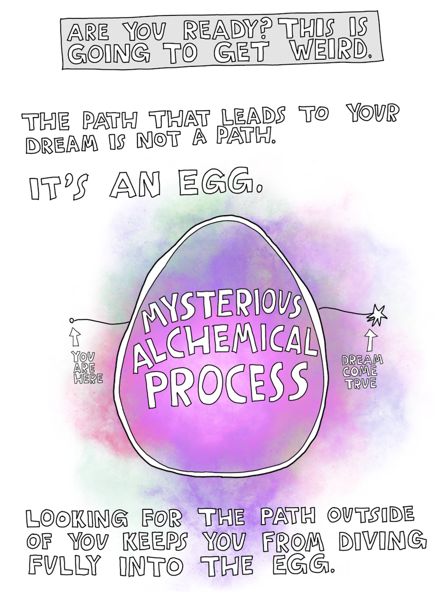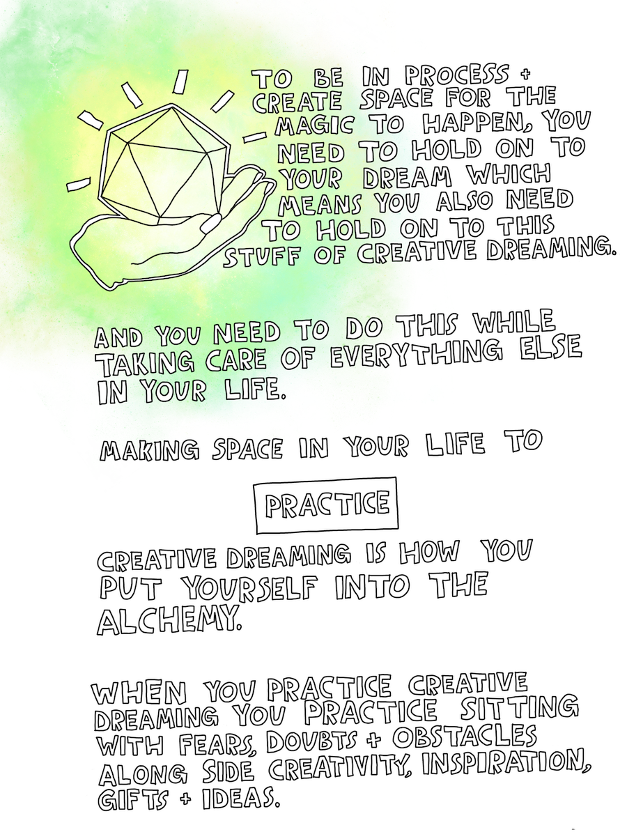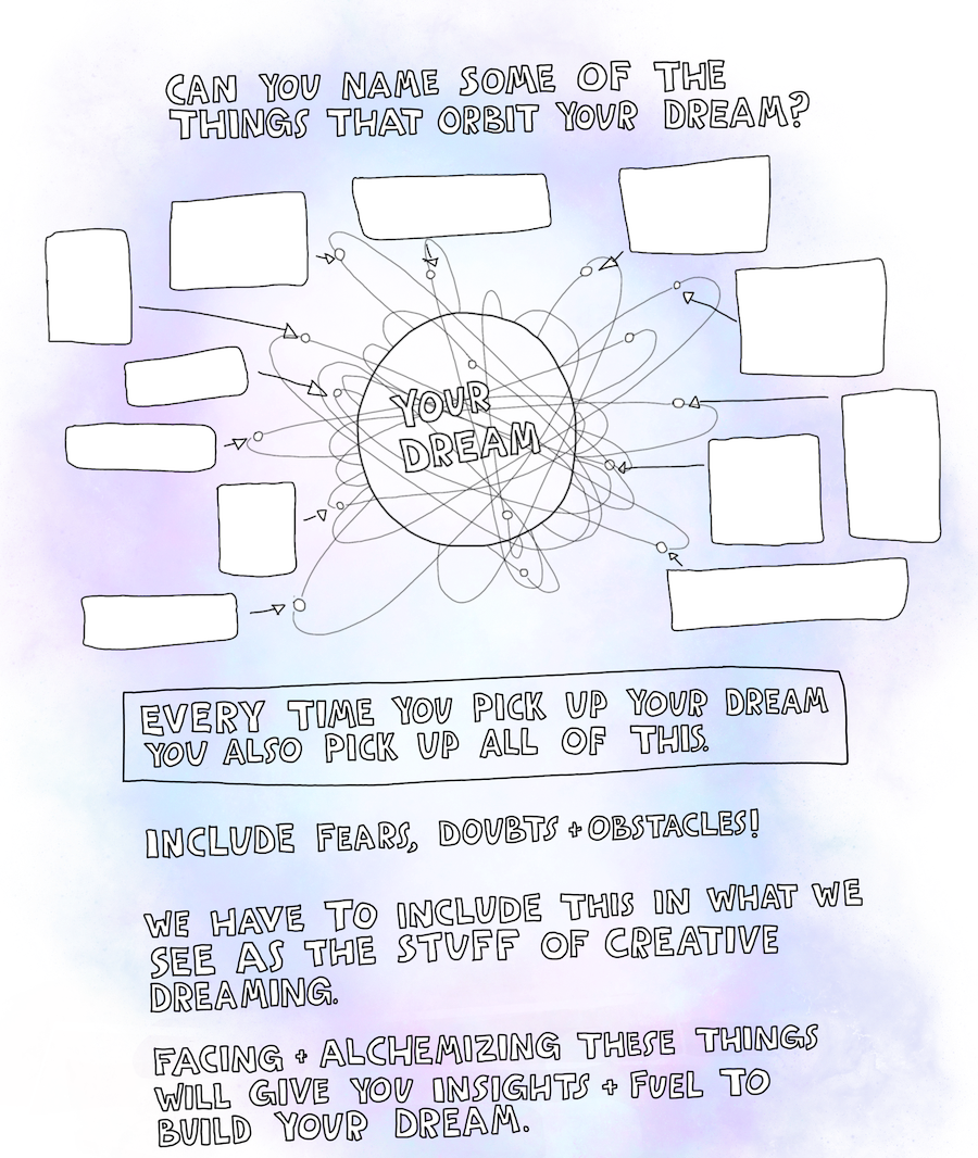 The whole thing is hand-drawn by me, with all the best things I've learned coaching creatives deeper into their dreams since 2009.